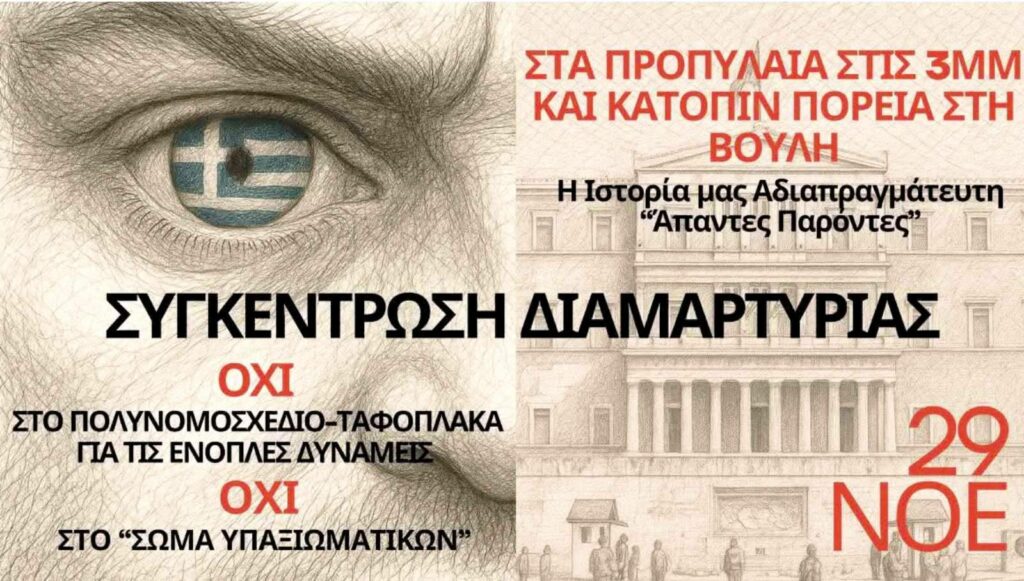 ΥΓ.. Όλοι Παρόν Σήμερα στις 15:00 στην κινητοποίηση διαμαρτυρίας . Ραντεβού στα Προπύλαια με Πορεία στην Βουλή.