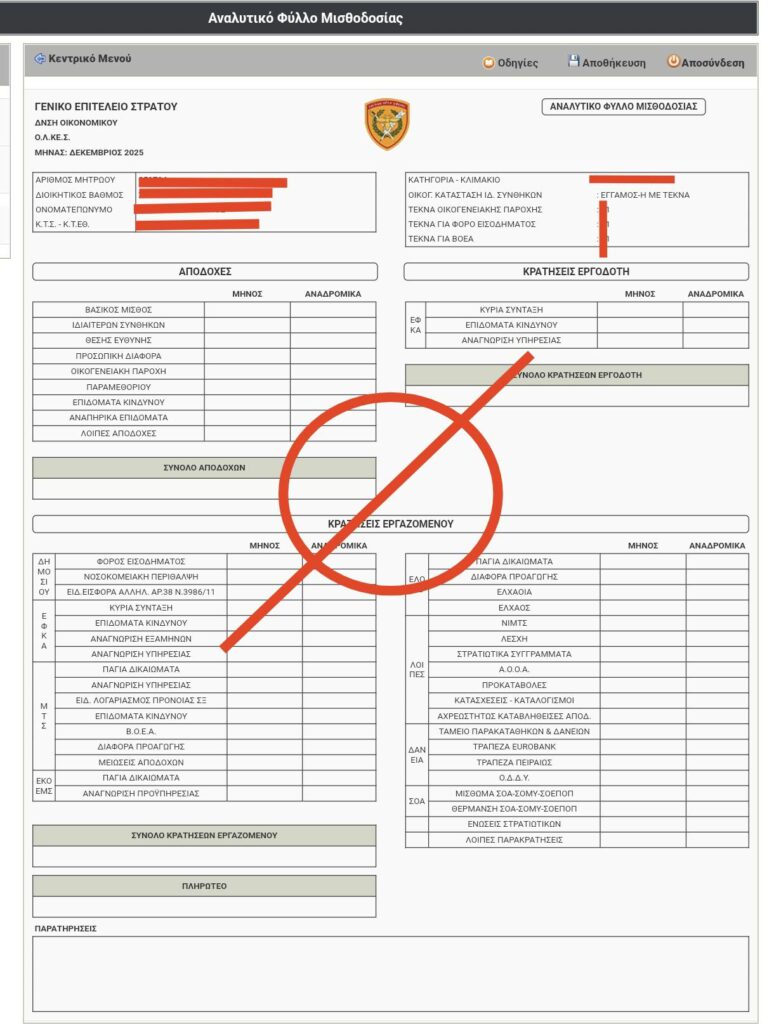 Η σύνταξη δεν εκδόθηκε, και έτσι μερικές εκατοντάδες στρατιωτικοί θα κάνουν φέτος Χριστούγεννα χωρίς σύνταξη και χωρίς μισθό.