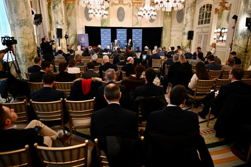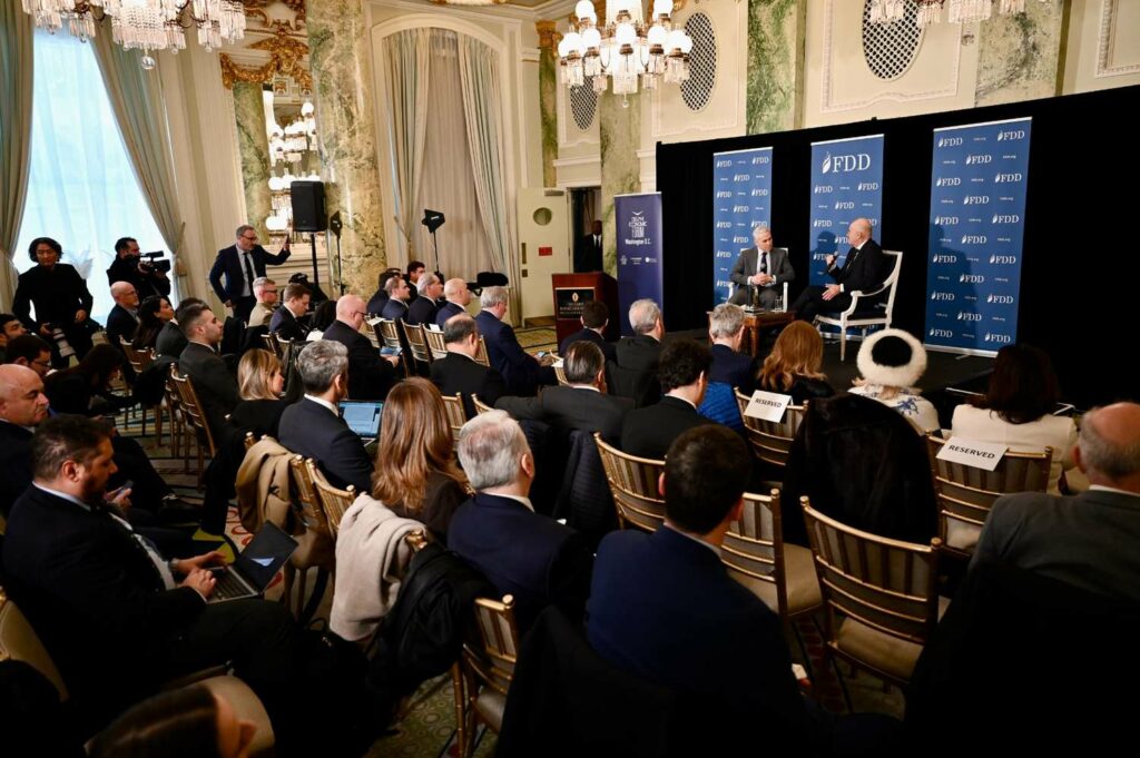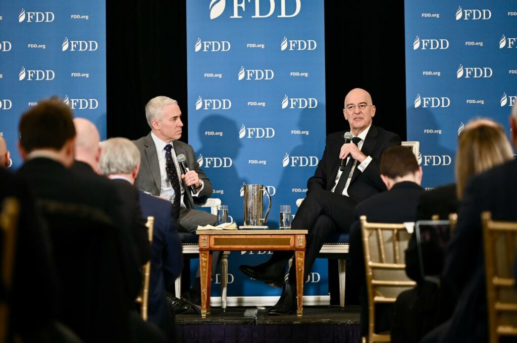 Ακολούθως, ο Υπουργός Εθνικής Άμυνας, στο πλαίσιο του “Delphi Economic Forum Washington D.C. VII”, συμμετείχε σε συζήτηση με τον Εκτελεστικό Διευθυντή του FDD (The Foundation for Defense of Democracies) Τζόναθαν Σάντζερ (Jonathan Schanzer), με θέμα τις τρέχουσες διεθνείς και περιφερειακές εξελίξεις στα ζητήματα Άμυνας και Ασφάλειας,.