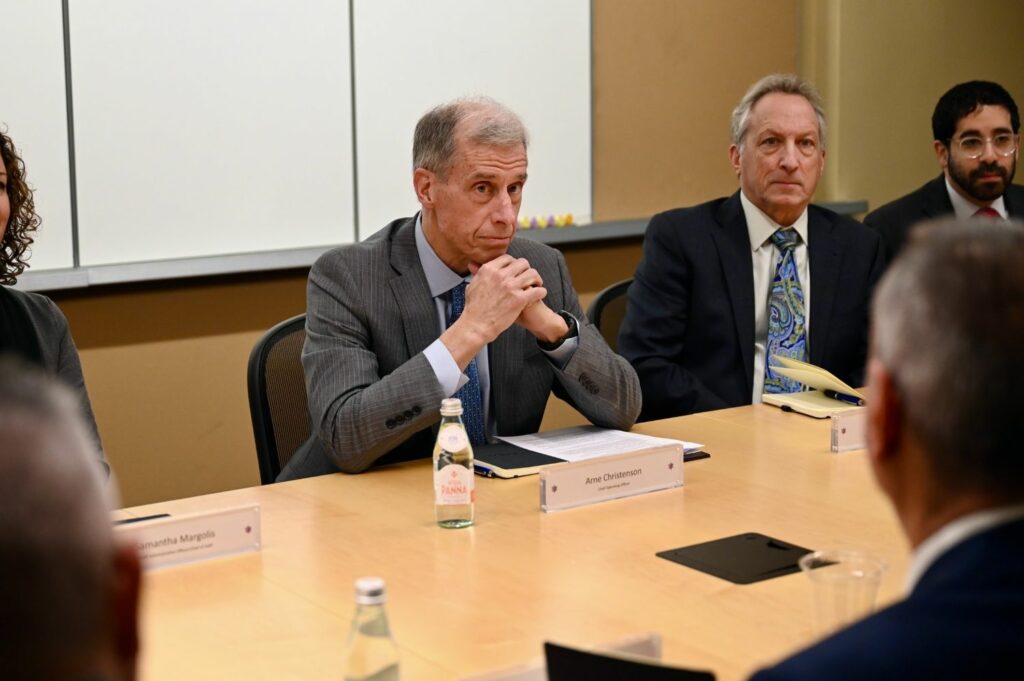 Χθες επίσης, ο Υπουργός μετέβη στα γραφεία της “American Israel Public Affairs Committee” (AIPAC) όπου συζήτησε με τον Γενικό Διευθυντή Άρνε Κρίστενσον (Arne Christenson) και μέλη του Διοικητικού Συμβουλίου της AIPAC σχετικά με τις προκλήσεις ασφαλείας στην ευρύτερη περιοχή της Ανατολικής Μεσογείου.
