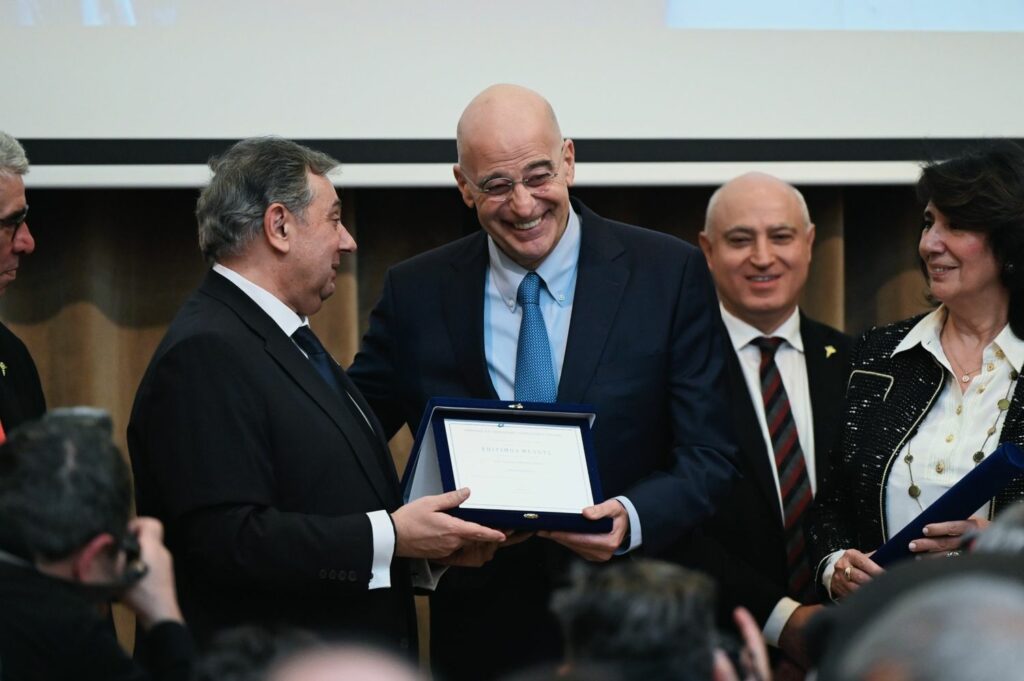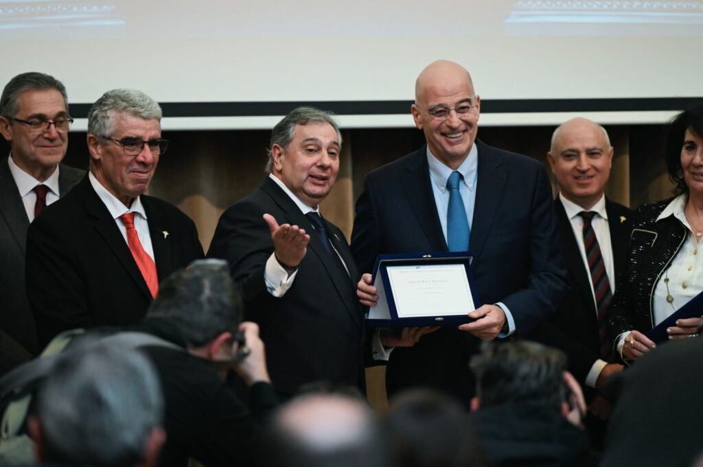 Στην ίδια εκδήλωση, κατόπιν ομόφωνης απόφασης του Διοικητικού Συμβουλίου του Εμπορικού και Βιομηχανικού Επιμελητηρίου Πειραιώς, απονεμήθηκε στον κ. Δένδια ο τίτλος του Επιτίμου μέλους για τη «μακρά και πολύτιμη παρουσία του στην εγχώρια και διεθνή πολιτική σκηνή, υπηρετώντας πιστά και αποτελεσματικά, από καίριες θέσεις, του Δημοκρατικό μας Πολίτευμα, το Σύνταγμα και τον εθνικό μας θυρεό».
