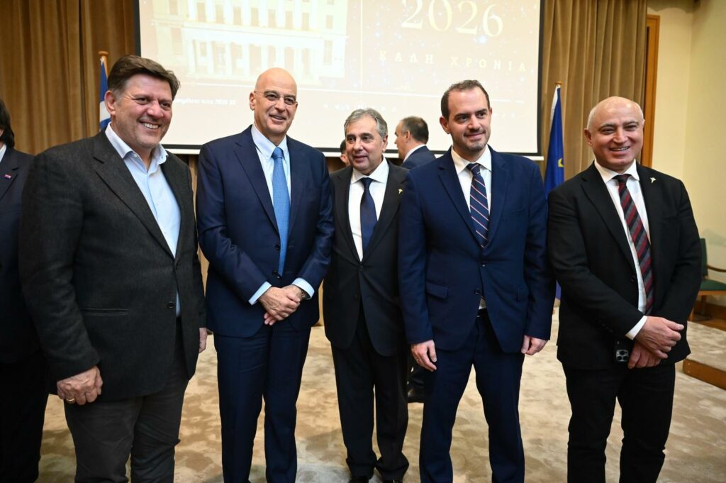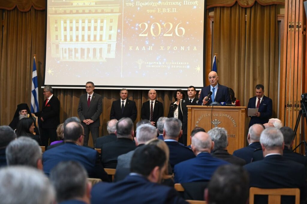 O Υπουργός Εθνικής Άμυνας, Νίκος Δένδιας, εκπροσώπησε σήμερα, Δευτέρα 12 Ιανουαρίου 2026, τον Πρόεδρο της Κυβέρνησης, στην εκδήλωση για την κοπή της πρωτοχρονιάτικης πίτας του Εμπορικού και Βιομηχανικού Επιμελητηρίου Πειραιώς.