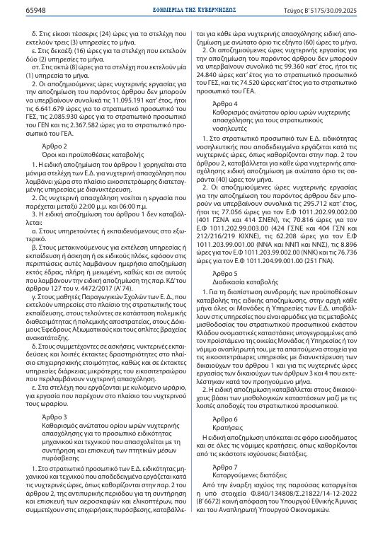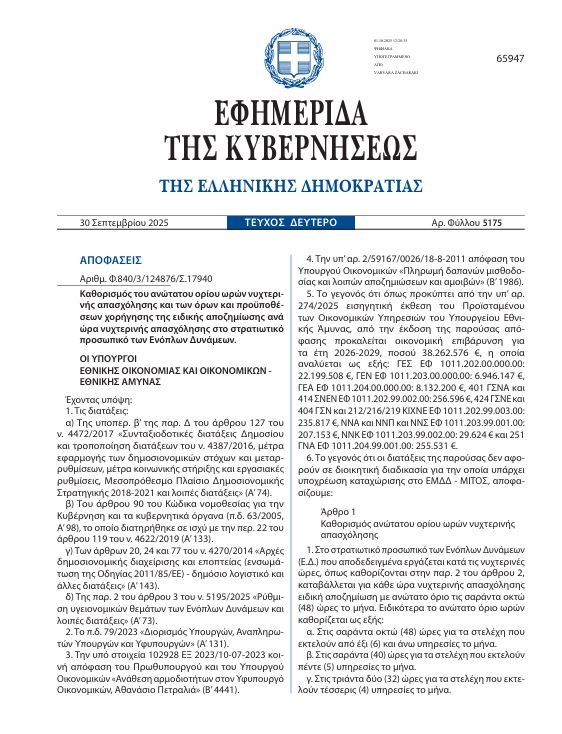 Δημοσιεύθηκε στο ΦΕΚ (Β’ 5175/30-9-2025) η Κοινή Υπουργική Απόφαση του Υπουργού Εθνικής Άμυνας, Νίκου Δένδια, και του Υφυπουργού Εθνικής Οικονομίας και Οικονομικών, Αθανάσιου Πετραλιά, με την οποία μπαίνει τέλος σε μια πολυετή αδικία για το προσωπικό των Ενόπλων Δυνάμεων.