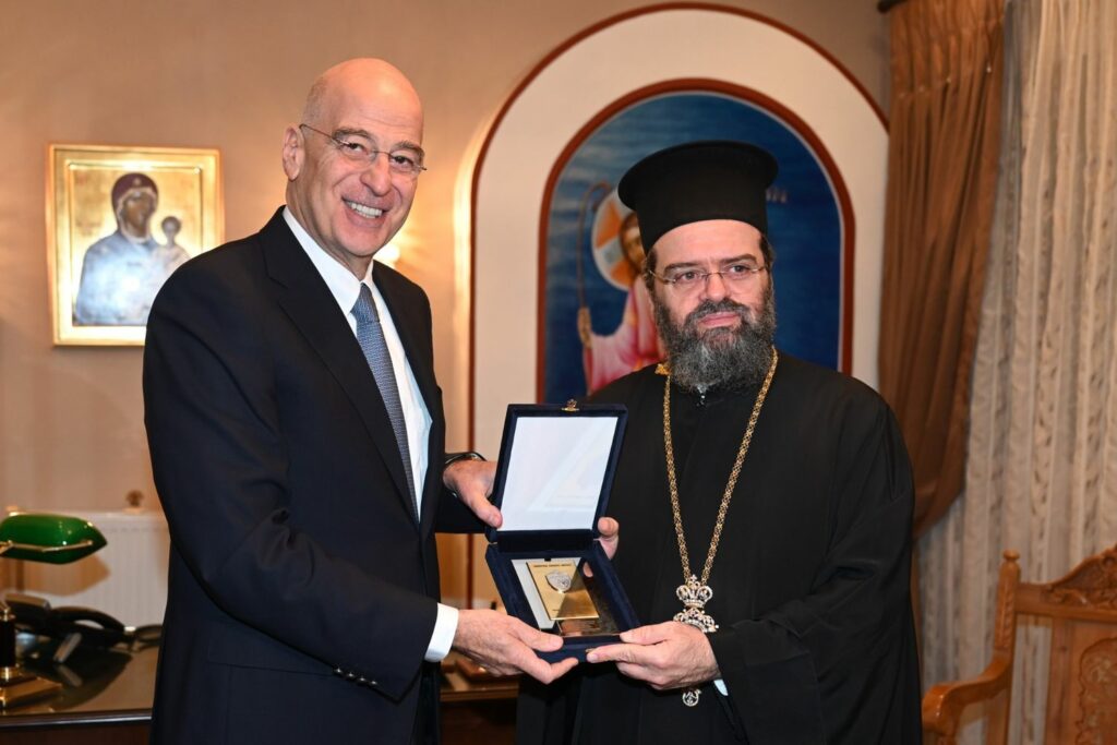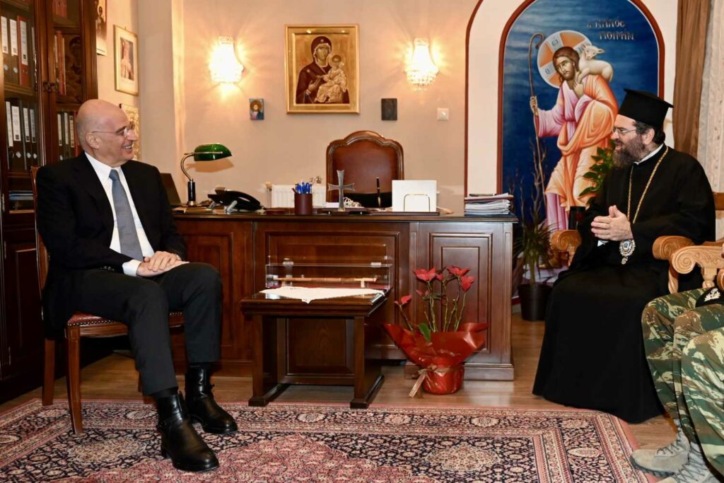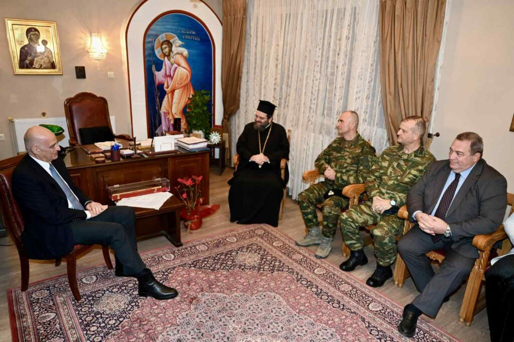 Στη συνέχεια ο κ. Δένδιας επισκέφθηκε τον Σεβασμιώτατο Μητροπολίτη Μαρωνείας & Κομοτηνής κ.κ. Παντελεήμονα στο Επισκοπείο της Ιεράς Μητροπόλεως. Στη συνάντηση αυτή όπως και στις υπόλοιπες συναντήσεις παρέστη επίσης ο Βουλευτής Ροδόπης Ευριπίδης Στυλιανίδης.