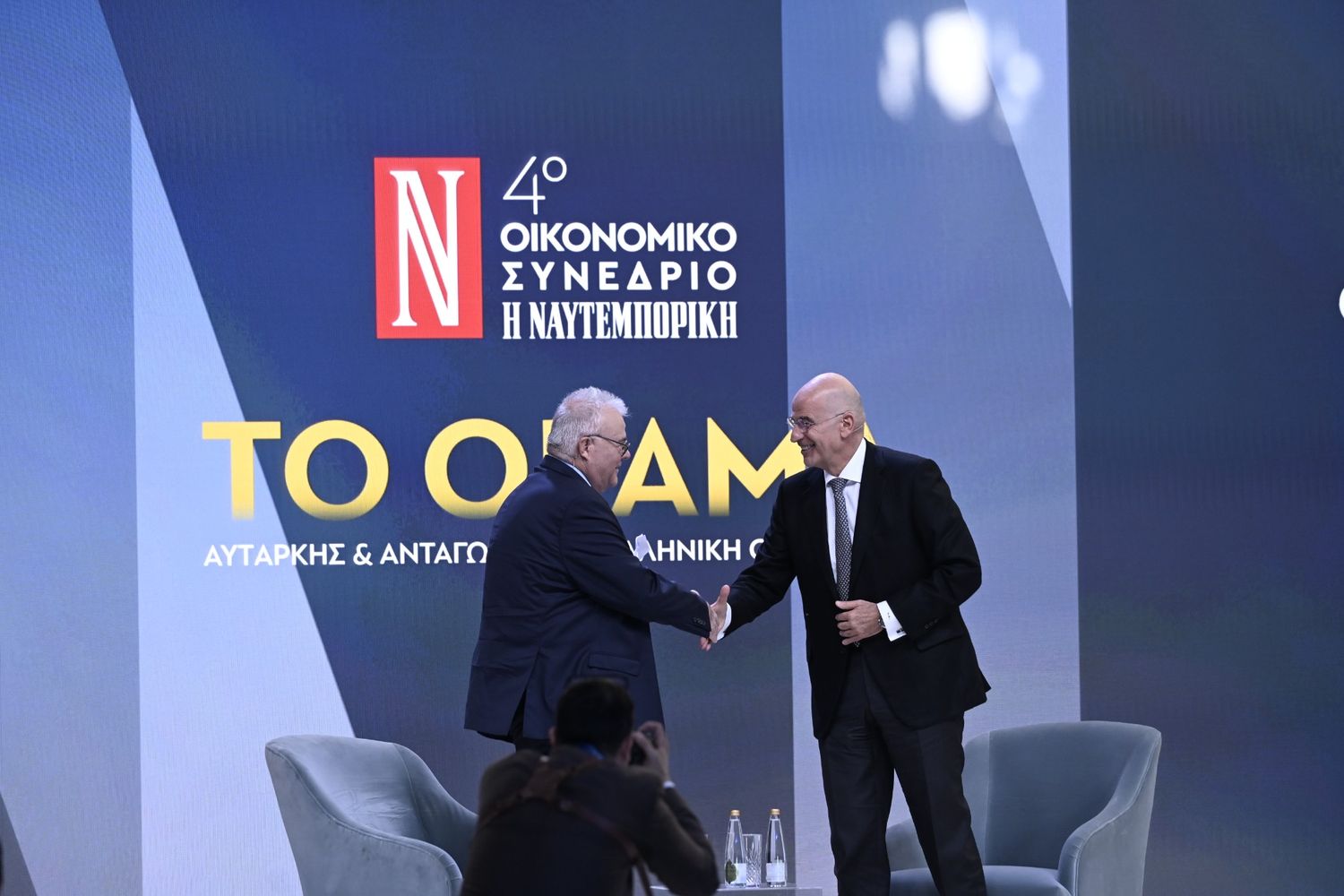 Συζήτηση ΥΕΘΑ Ν. Δένδια με τον διευθυντή του naftemporiki.gr Μ. Ψύλο στο 4ο Οικονομικό Συνέδριο της Ναυτεμπορικής