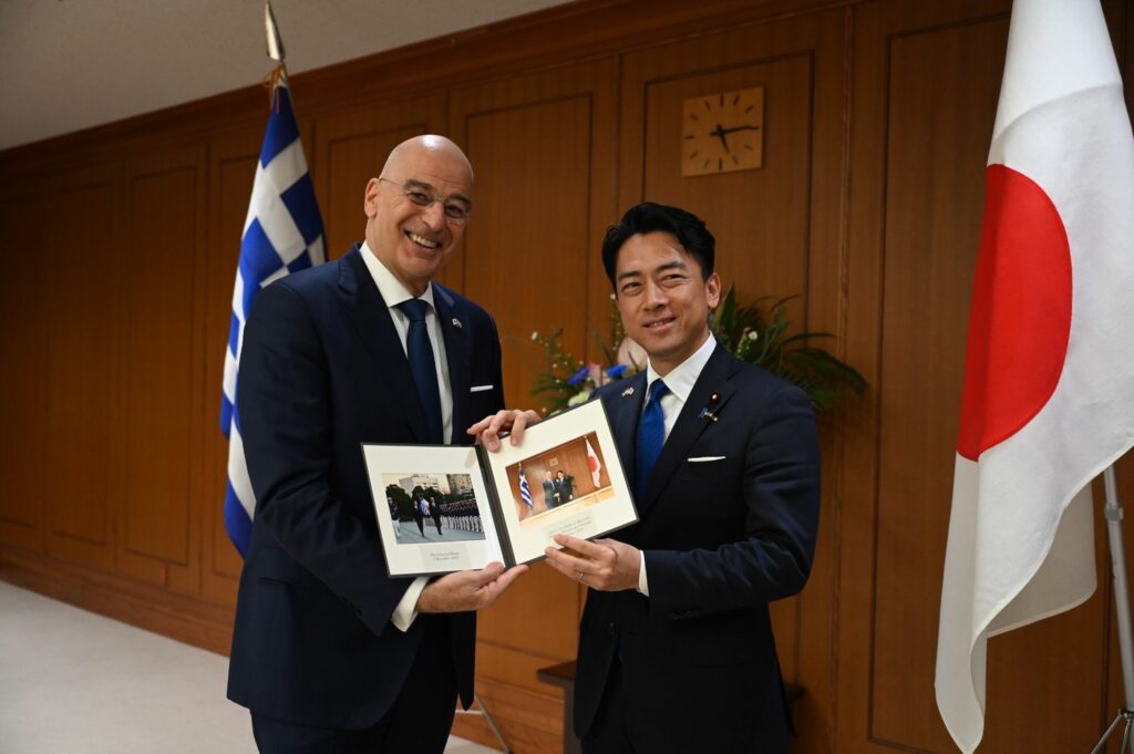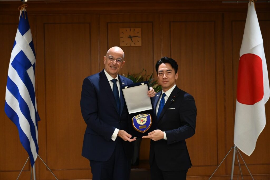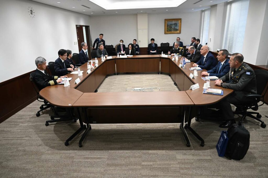 Αμέσως μετά ο κ. Δένδιας συναντήθηκε με τον Ιάπωνα ομόλογό του Σιντζίρο Κοϊζούμι (Shinjiro Koizumi) στο Υπουργείο Άμυνας, στο Τόκυο, όπου πραγματοποιήθηκε επίσημη υποδοχή. Κατά τη συνάντηση εξετάσθηκαν συγκεκριμένοι τρόποι ενίσχυσης της ελληνο-ιαπωνικής αμυντικής συνεργασίας, ιδίως στην καινοτομία και τις προηγμένες τεχνολογίες, με έμφαση στην εφαρμογή τους στο θαλάσσιο περιβάλλον. Κατά τη συνάντηση, ο Έλληνας Υπουργός απηύθυνε επίσημη πρόσκληση στον Ιάπωνα ομόλογο του να επισκεφτεί την Ελλάδα, την οποία αποδέχθηκε.