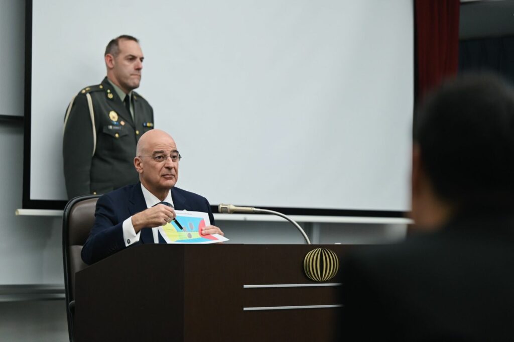 Ο Υπουργός Εθνικής Άμυνας επισκέφθηκε επίσης σήμερα το Εθνικό Ινστιτούτο Αμυντικών Σπουδών (National Institute for Defense Studies), όπου απηύθυνε ομιλία ενώπιων των Αξιωματικών σπουδαστών της Ακαδημίας. Επίσης, απάντησε σε ερωτήσεις τους σχετικά με τις αμυντικές σχέσεις Ελλάδας – Ιαπωνίας και το περιβάλλον ασφαλείας στην ευρύτερη περιοχή της Νοτιοανατολικής Μεσογείου.