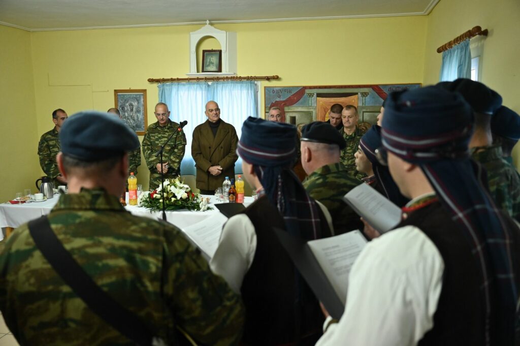 Ο Υπουργός Εθνικής Άμυνας, Νίκος Δένδιας, συνοδευόμενος από τον Αρχηγό ΓΕΕΘΑ Στρατηγό Δημήτριο Χούπη, παρουσία του Διοικητή της 1ης Στρατιάς/EU-OHQ «ΑΧΙΛΛΕΑΣ» Αντιστράτηγου Σταύρου Παπασταθόπουλου και του Διοικητή της Ανώτατης Στρατιωτικής Διοίκησης Θράκης, Αντιστράτηγου Παναγιώτη Καβιδόπουλου, επισκέφθηκε χθες Τετάρτη 24 Δεκεμβρίου 2025, με την ευκαιρία των εορτών των Χριστουγέννων και της Πρωτοχρονιάς, το 316 Συνεργείο Περιοχής Τεχνικού στους Τοξότες Ξάνθης και την έδρα της Ανώτατης Στρατιωτικής Διοίκησης Θράκης, (ΑΣΔΙΘ).