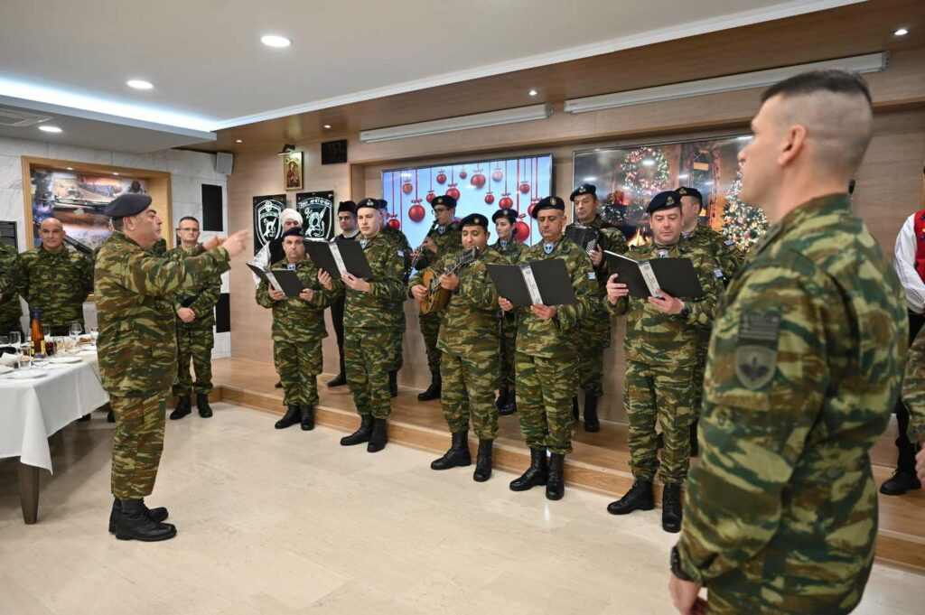 Κατά την επίσκεψή του στο 316 ΣΠΤΧ, ο κ. Δένδιας άκουσε παραδοσιακά χριστουγεννιάτικα κάλαντα της Θράκης και της Κέρκυρας από τη χορωδία της Ταξιαρχίας Υποστήριξης (ΤΑΞΥΠ), ενώ είχε την ευκαιρία να περιηγηθεί στους χώρους του Συνεργείου, να συνομιλήσει, όπως και να ανταλλάξει ευχές, με τα στελέχη και τους οπλίτες θητείας.