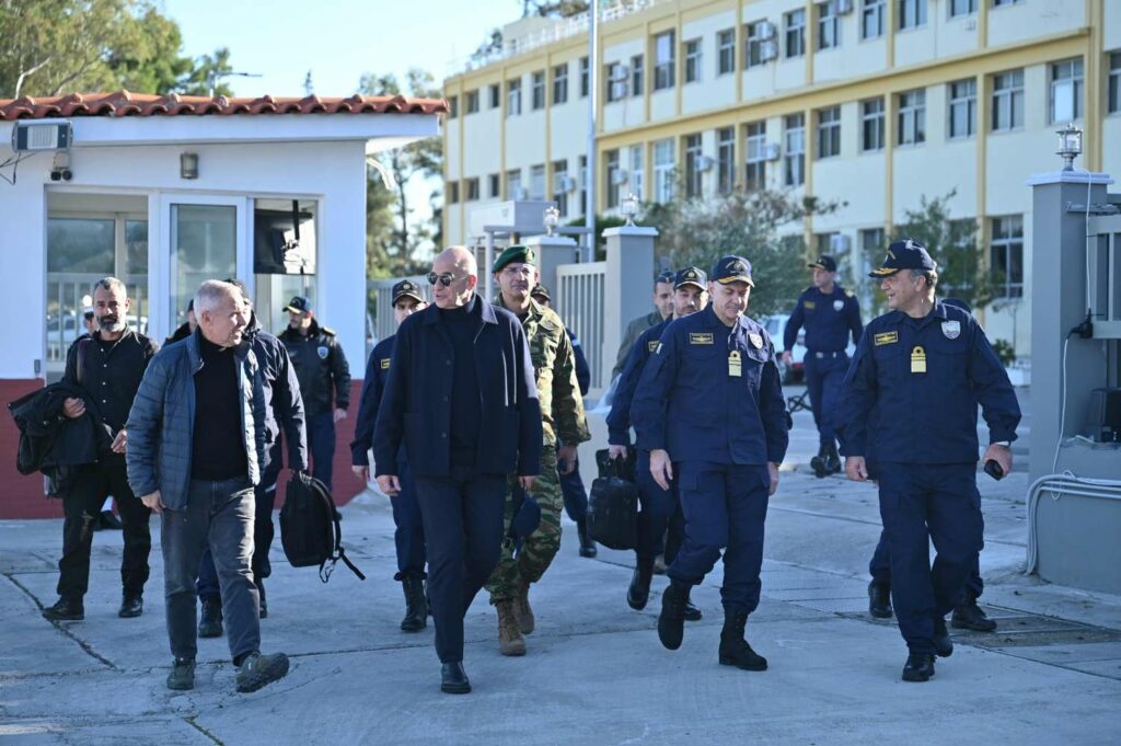 Τον Υπουργό συνόδευαν ο Υφυπουργός Άμυνας Θανάσης Δαβάκης, ο Αρχηγός ΓΕΕΘΑ Στρατηγός Δημήτριος Χούπης, ο Αρχηγός ΓΕΝ Αντιναύαρχος Δημήτριος–Ελευθέριος Κατάρας ΠΝ, καθώς και ο Αρχηγός Στόλου Αντιναύαρχος Χρήστος Σασιάκος ΠΝ.