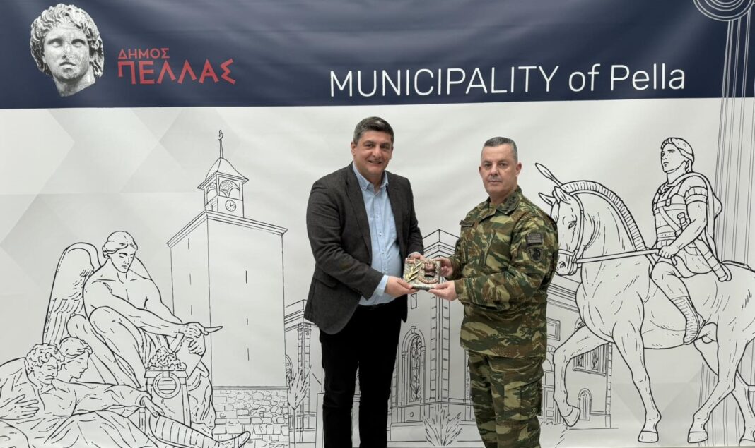 Εθιμοτυπική επίσκεψη πραγματοποίησε στην έδρα του Δήμου Πέλλας, στα Γιαννιτσά, ο νέος Διοικητής της 2ης Μηχανοκίνητης Μεραρχίας Πεζικού «ΕΛΑΣΣΩΝ», Υποστράτηγος Αλέξανδρος Κουφοπούλος, όπου συναντήθηκε με τον Δήμαρχο Πέλλας, Στάθη Φουντουκίδη.