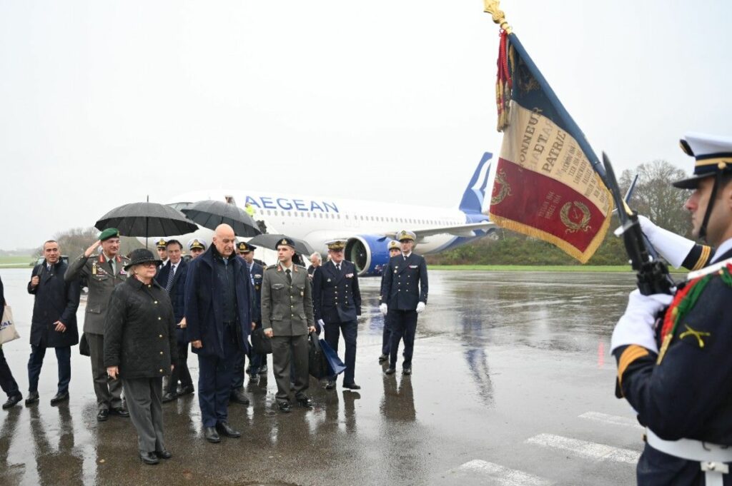 Κατά την άφιξή του κ. Δένδια στη Λοριάν, πραγματοποιήθηκε επίσημη υποδοχή από την Υπουργό Άμυνας της Γαλλίας Κατρίν Βωτρίν (Catherine Vautrin). Ακολούθησε κατ’ ιδίαν συνάντηση των δύο Υπουργών Άμυνας και γεύμα εργασίας στην αεροπορική βάση Naval Air Station Lann-Bihoue.
