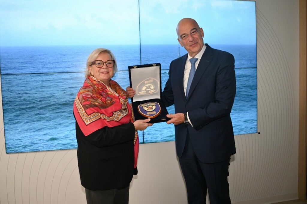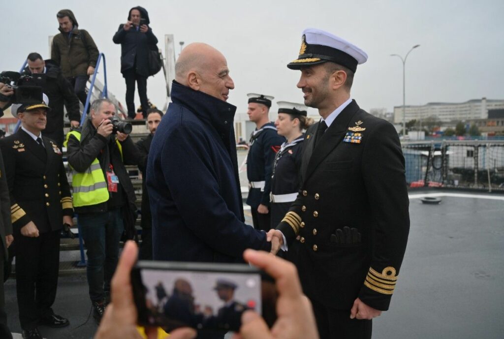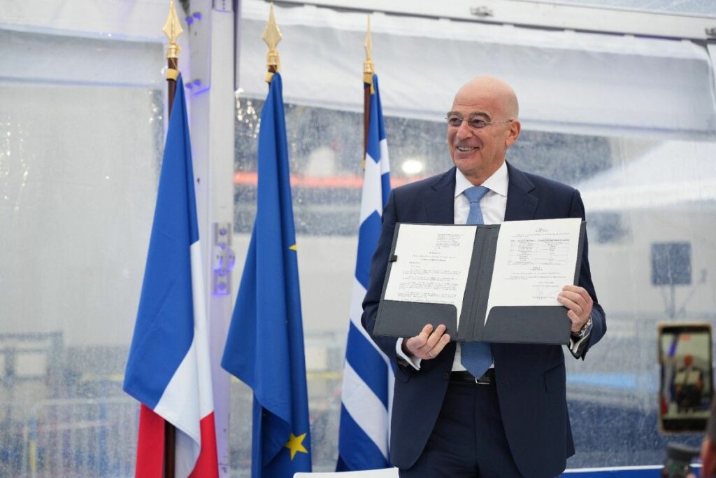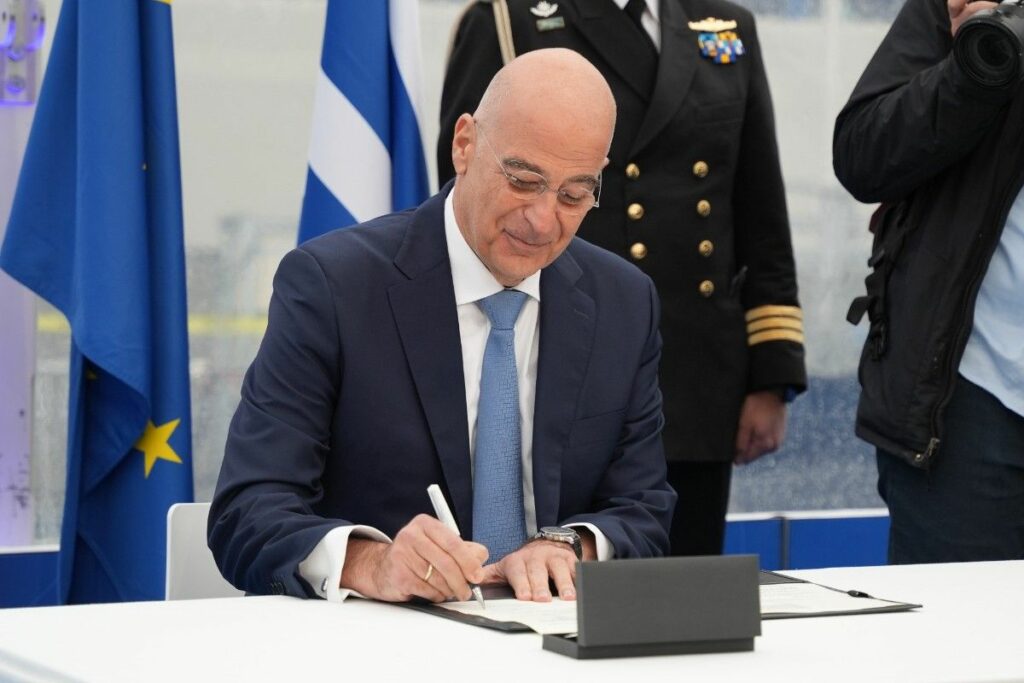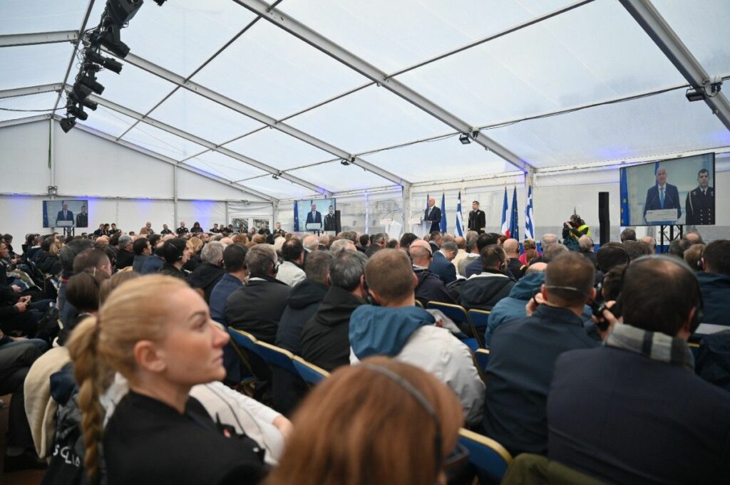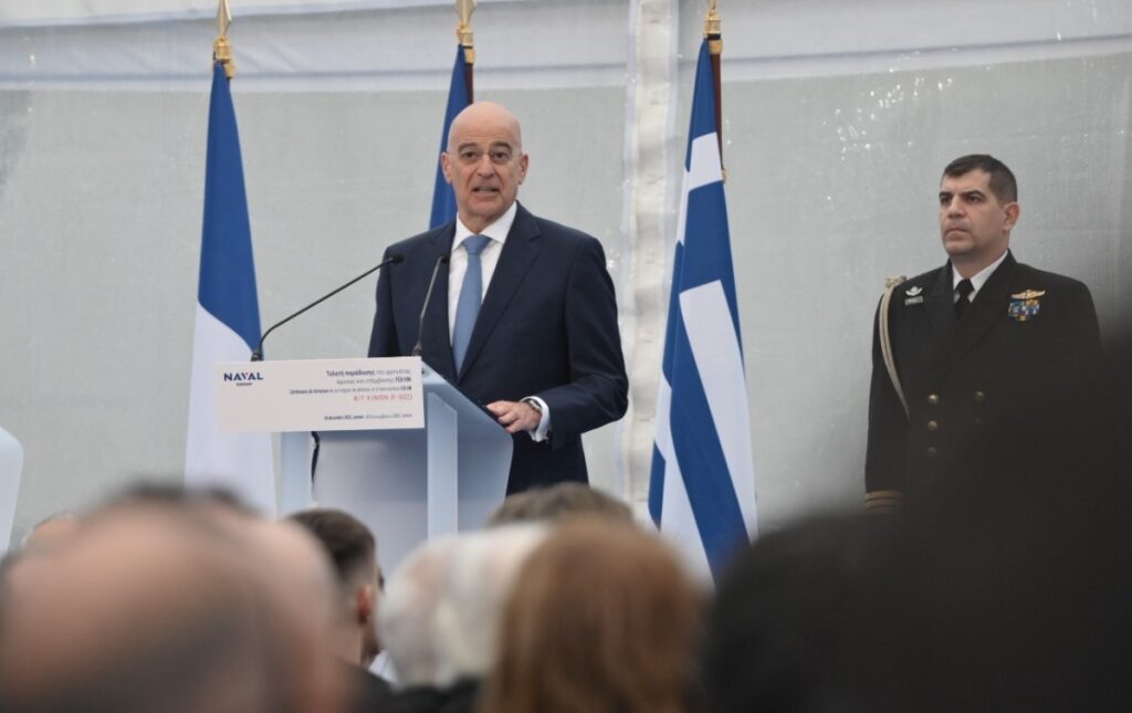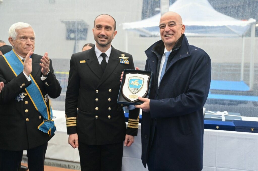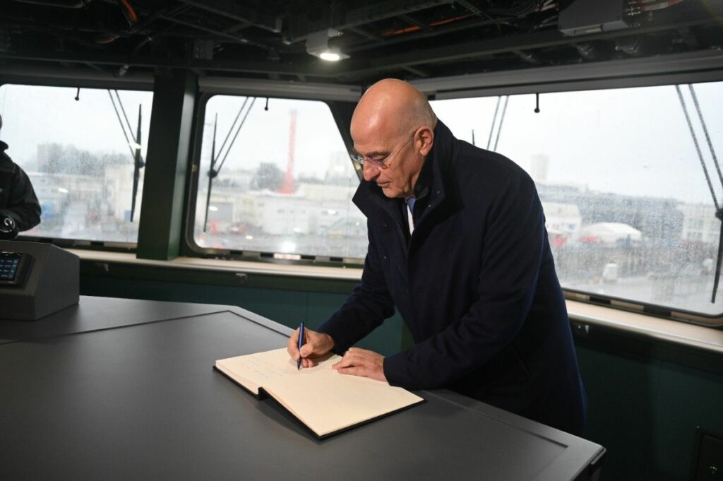 Και οφείλω εδώ να κάνω μια αναφορά στη Στρατηγική μας Σχέση με την Γαλλία. Την χώρα, στην οποία κατασκευάστηκε αυτό το εξαιρετικό πλοίο. Η Συμφωνία Στρατηγικής Εταιρικής Σχέσης της 28ης Σεπτεμβρίου 2021, την οποία υπέγραψα τότε ως Υπουργός Εξωτερικών της Ελληνικής Δημοκρατίας, αποτέλεσε μια στρατηγική επιλογή για τη Πατρίδα μας. Ενσωματώνει και την αλληλεγγύη μεταξύ δύο κρατών.