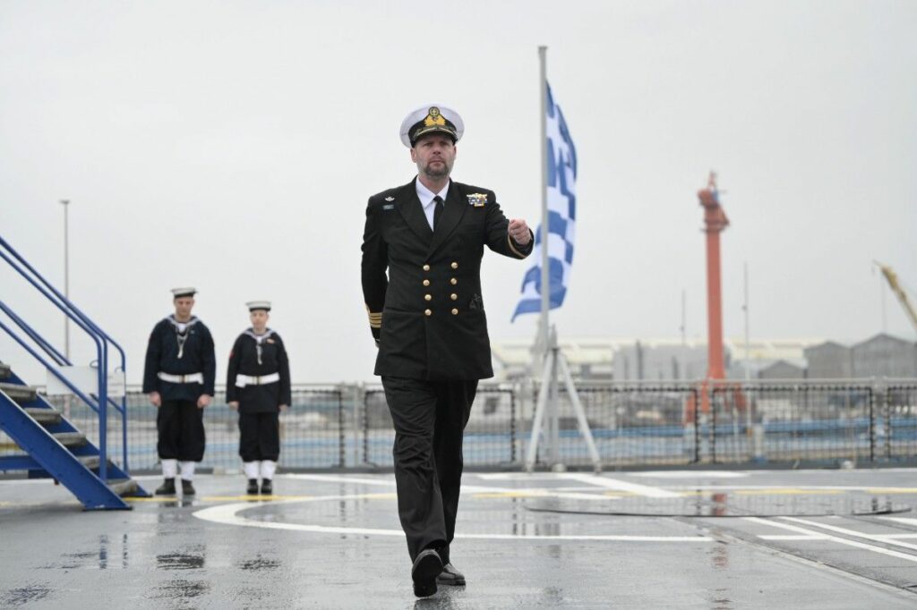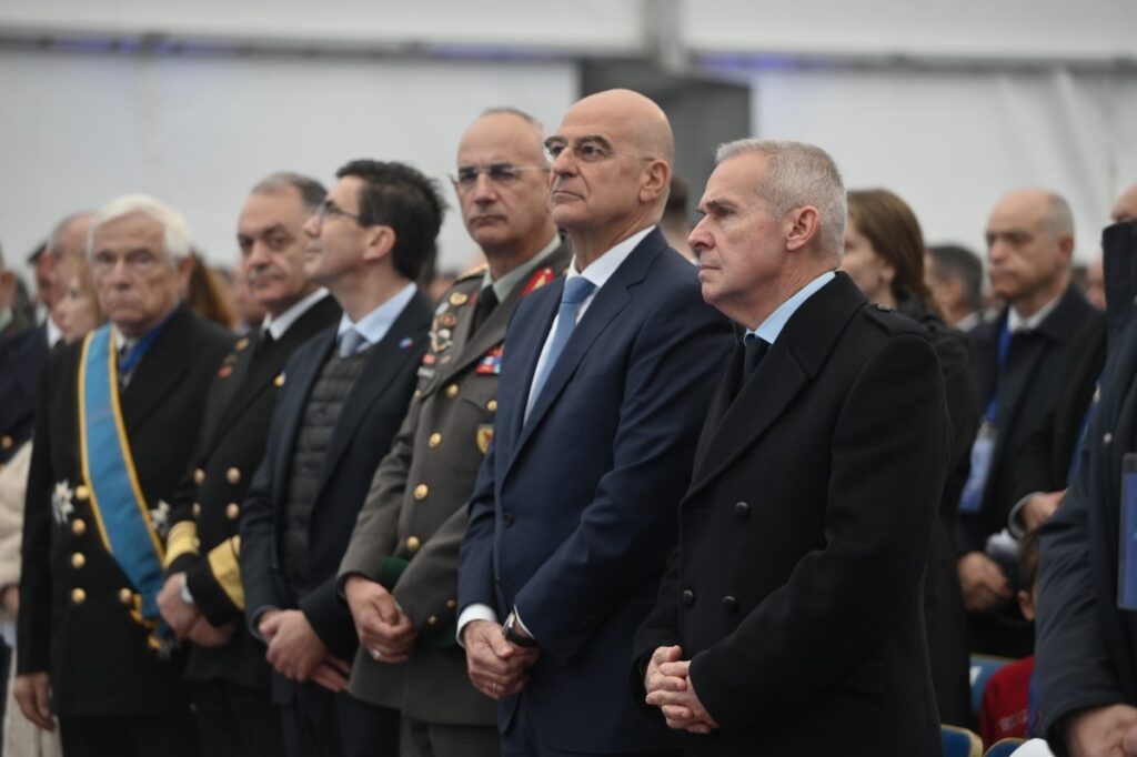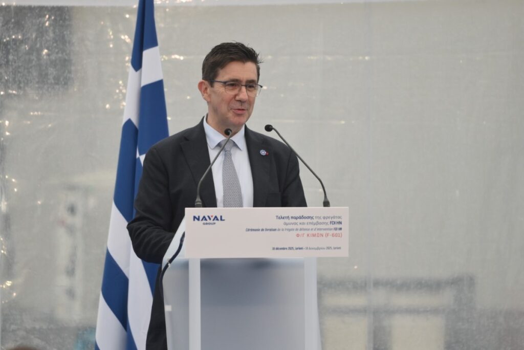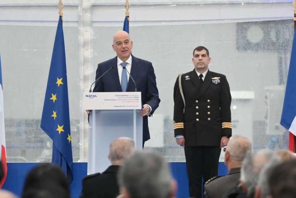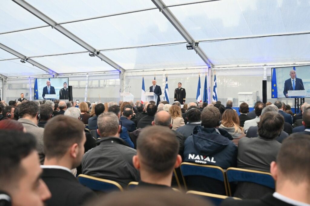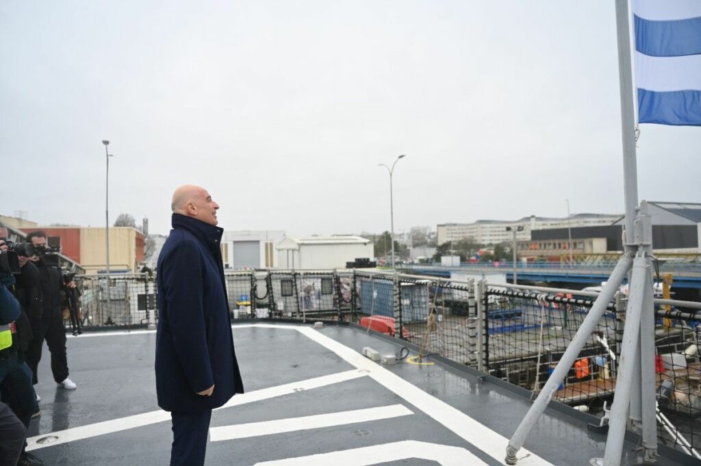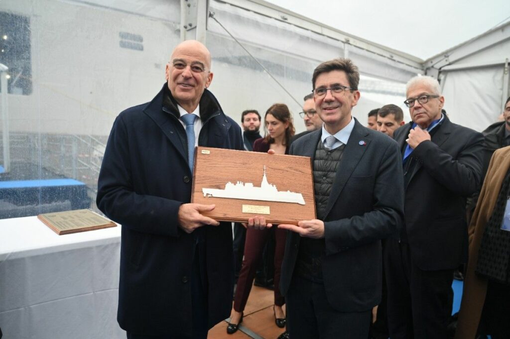 Ο Υπουργός Εθνικής Άμυνας, Νίκος Δένδιας, παρέστη σήμερα, Πέμπτη 18 Δεκεμβρίου 2025, στην τελετή ονοματοδοσίας και ύψωσης της ελληνικής σημαίας στην πρώτη από τις τέσσερις Φρεγάτες FDI HN (“Belh@rra”), που εντάσσονται στο Πολεμικό Ναυτικό, την Φρεγάτα F-601 «ΚΙΜΩΝ». Η τελετή πραγματοποιήθηκε στις εγκαταστάσεις της “Naval Group”, στη Λοριάν (Lorient) της Γαλλίας.