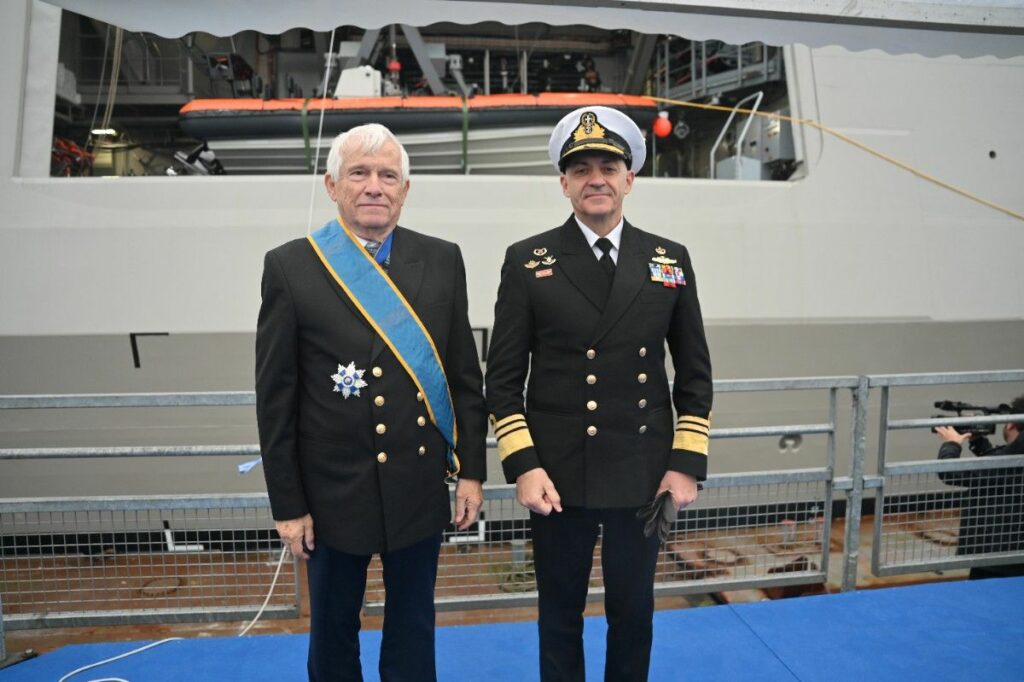 Ακολούθησε η τελετή ονοματοδοσίας της Φρεγάτας, με ανάδοχο τον Υποναύαρχο επί τιμή Πάνο Λασκαρίδη, η έπαρση της Ελληνικής Σημαίας και η επιβίβαση των μελών του πληρώματος και η έπαρση του κυβερνητικού επισείοντα.