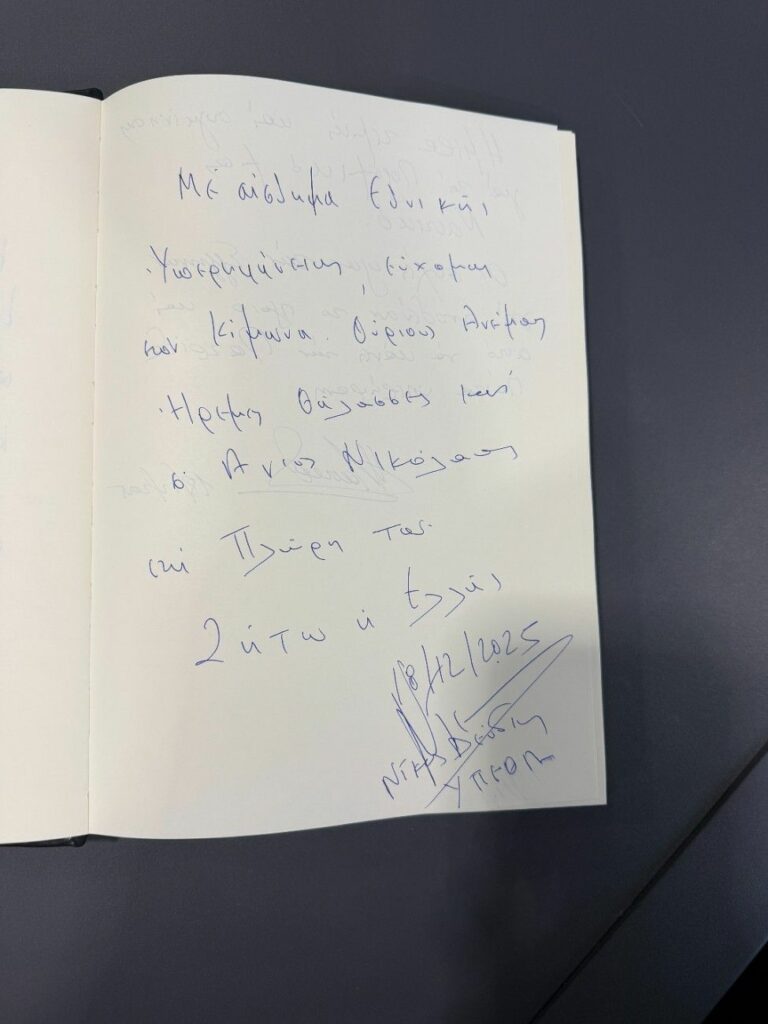 Πριν από λίγη ώρα είχα την εξαιρετική τιμή να υπογράψω την ένταξη του «ΚΙΜΩΝΑ» στο Πολεμικό μας Ναυτικό. Ενισχύεται πλέον η δυνατότητα αποτροπής μας. Η δυνατότητα να υπερασπίσουμε την κυριαρχία και τα κυριαρχικά μας δικαιώματα. Η δυνατότητα μας να προβάλουμε τις Ευρωπαϊκές αξίες με έναν τρόπο ακόμη πιο ισχυρό.
