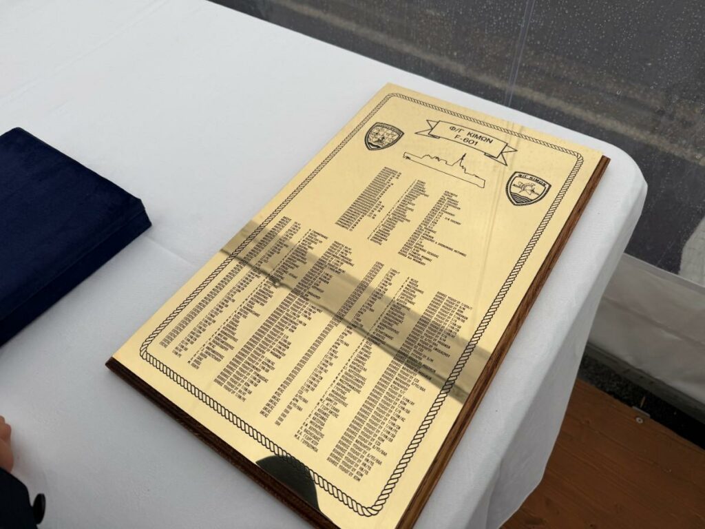 «Δεν χρειάζεται να σας πω πόση μεγάλη χαρά και πόσο μεγάλη υπερηφάνεια νιώθουν όλοι σήμερα. Είναι η πρώτη ένταξη μεγάλης Μονάδας στον ελληνικό Στόλο μετά από σχεδόν 30 χρόνια και ο «Κίμωνας» αυτή τη στιγμή είναι στην κλάση του το καλύτερο πλοίο στο κόσμο.
