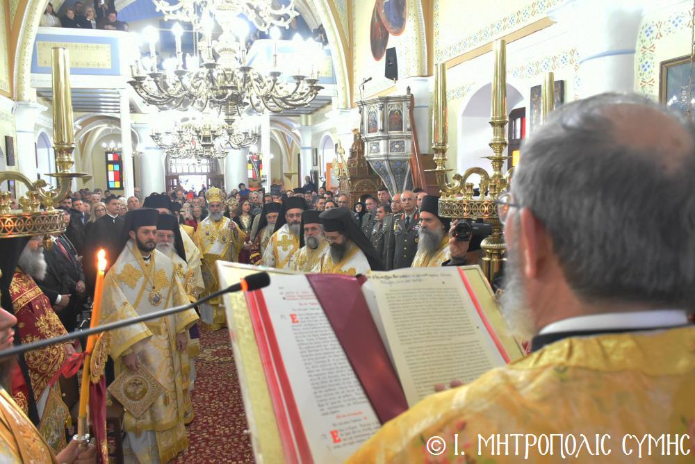 Σήμερα τό πρωΐ, καί στόν Ἱ. Μητροπολιτικό Ναό Τιμίου Προδρόμου Σύμης, ἐτελέσθη Πολυαρχιερατική Θεία Λειτουργία, στήν ὁποία προεξῆρχε ὁ Σεβ. Ποιμενάρχης μας, Μητροπολίτης Σύμης κ. Χρυσόστομος, συλλειτουργούντων τῶν Σεβ. Μητροπολιτῶν, Ρόδου κ. Κυρίλλου, Λέρου, Καλύμνου καί Ἀστυπαλαίας κ. Παϊσίου, Κώου καί Νισύρου κ. Ναθαναήλ, Νουβίας κ. Σάββα, Νέας Κρήνης καί Καλαμαριᾶς κ. Ἰουστίνου, Παραμυθίας, Φιλιατῶν, Γηρομερίου καί Πάργης κ. Σεραπίωνος, Αὐλῶνος κ. Χριστοδούλου, ὡς καί τῶν Θεοφιλεστάτων Ἐπισκόπων, Στρατονικείας κ. Στεφάνου, Ὀλύμπου κ. Κυρίλλου καί Λακεδαιμονίας κ. Θεοφίλου.
