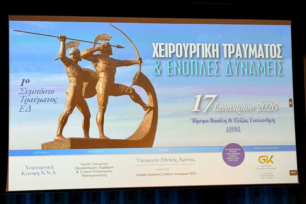«Είναι μεγάλη τιμή για μένα που είχα την ευκαιρία να είμαι εδώ, σήμερα, στο Συμπόσιο του Κέντρου Τραύματος, που διοργανώθηκε από το Ναυτικό Νοσοκομείο Αθηνών στο Μουσείο Γουλανδρή, που μας φιλοξενεί εδώ.