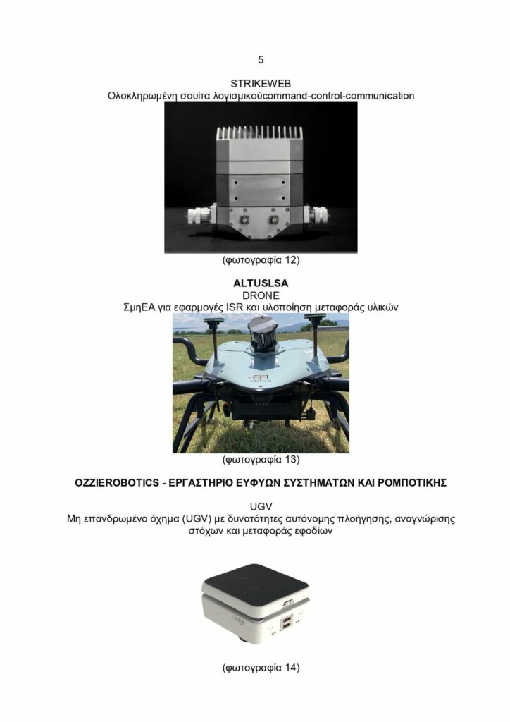 - Αναγνώρισε τον ρόλο των ελληνικών καινοτόμων εταιρειών ως πολύτιμο συνεργάτη των Ενόπλων Δυνάμεων.