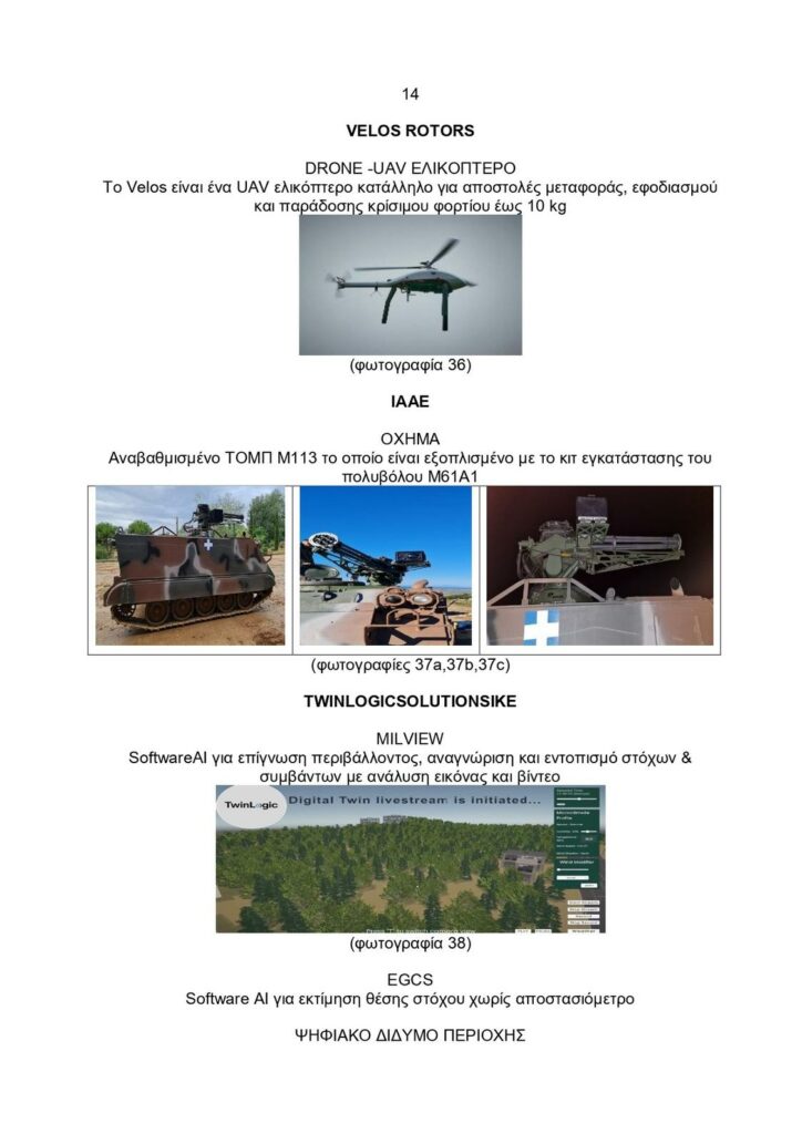 Επιπρόσθετα, χρησιμοποιήθηκαν και αξιολογήθηκαν καινοτόμα συστήματα που αναπτύχθηκαν και κατασκευάστηκαν από το ΚΕΤΑΚ και το 306 ΕΒΤ, μεταξύ των οποίων η Κινητή Μονάδα Παραγωγής Drone.