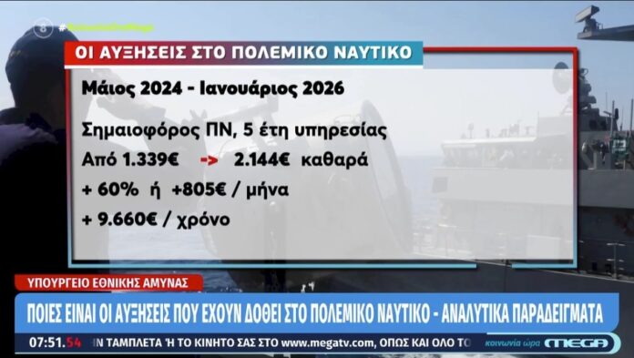 Σημαντικές αυξήσεις στις καθαρές αποδοχές των στελεχών των Ενόπλων Δυνάμεων καταγράφονται την περίοδο από τον Μάιο του 2024 έως και τον Ιανουάριο του 2026.