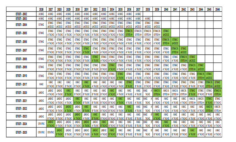 χρόνος υποβολής των ατομικών τους εγγράφων, η ένταξη των ΕΠ.ΟΠ. σε επετηρίδες και