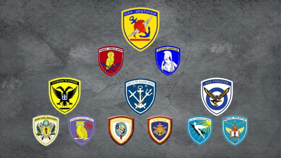 Ευελπίδων (ΣΣΕ), Σχολή Ναυτικών Δοκίμων (ΣΝΔ), Σχολή Ικάρων (ΣΙ)],