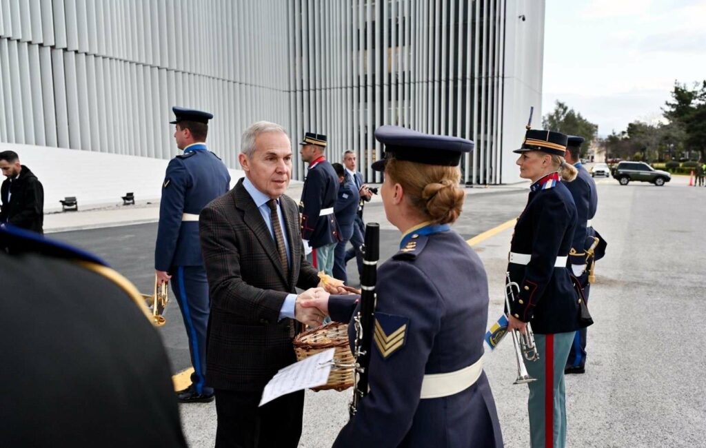 Τα κάλαντα της Πρωτοχρονιάς έψαλε στον Υφυπουργό Εθνικής Άμυνας Θανάση Δαβάκη και στη στρατιωτική ηγεσία η Διακλαδική Μπάντα των Ενόπλων Δυνάμεων, στον προαύλιο χώρο του Υπουργείου Εθνικής Άμυνας.