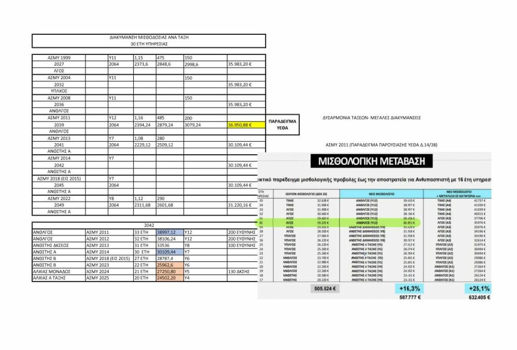 Στα 30 χρόνια υπηρεσίας θα λάβει 36951€ ενώ η τάξη 2013 στα ίδια χρόνια