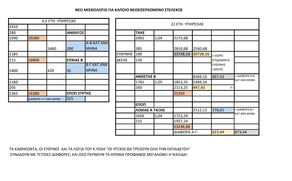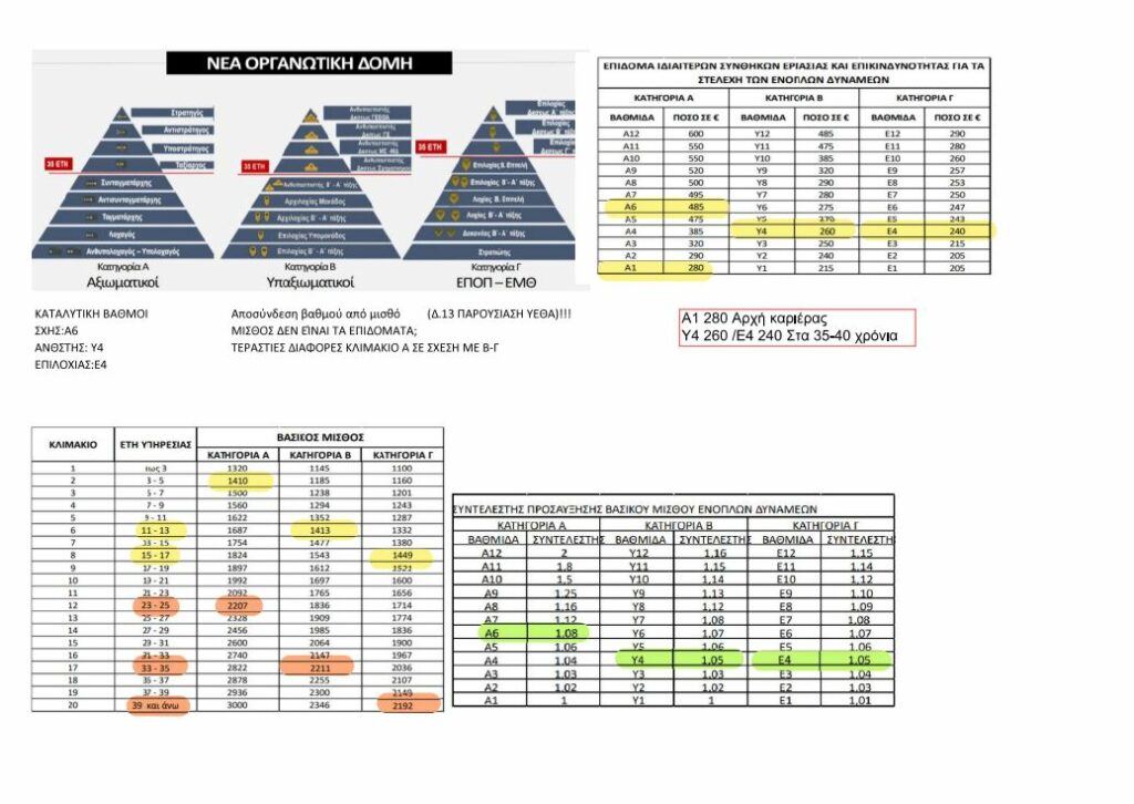 έτη και 22 έτη υπηρεσίας. Ακόμη αναλύονται τα επιδόματα θέσεις ευθύνης και