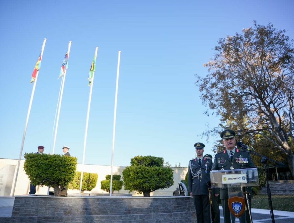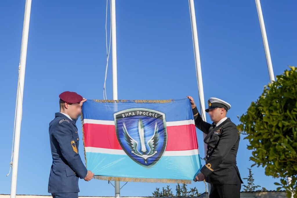 Υποκλίνομαι ευλαβικά στις Πολεμικές Σημαίες των Σχηματισμών της ΔΕΠ, της Ιης Μεραρχίας Πεζικού και της Διακλαδικής Διοίκησης Ειδικών Επιχειρήσεων, καθώς και στο Ιερό Κειμήλιο της Πολεμικής Σημαίας του Ιερού Λόχου της Μέσης Ανατολής, του πρώτου ελληνικού διακλαδικού τμήματος με συμμετοχή προσωπικού και από τους τρείς κλάδους των Ενόπλων Δυνάμεων