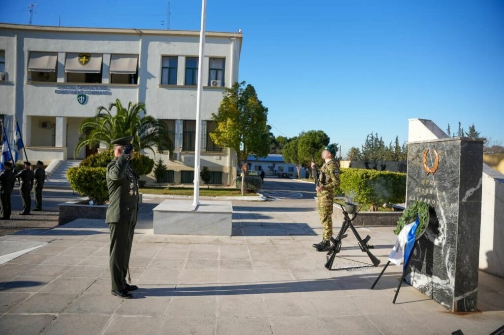 Με την ανάληψη των καθηκόντων μου, θεωρώ ιερή υποχρέωση να υποκλιθώ με απέραντο σεβασμό και υπερηφάνεια στην πολεμική σημαία της Διοίκησης, καθώς και στις πολεμικές σημαίες των Σχηματισμών της, της Ιης Μεραρχίας Πεζικού και της Διακλαδικής Διοίκησης Ειδικών Επιχειρήσεων και των Μονάδων τους, καθώς και στο Ιερό Κειμήλιο της πολεμικής σημαίας του Ιερού Λόχου της Μέσης Ανατολής. Συνάμα, αποτείω φόρο τιμής στους αθάνατους και ηρωικώς πεσόντες στους αγώνες του Έθνους, Αξκούς και Οπλίτες, καθώς και στους πεσόντες των Μονάδων της ΔΕΠ κατά την ειρήνη.