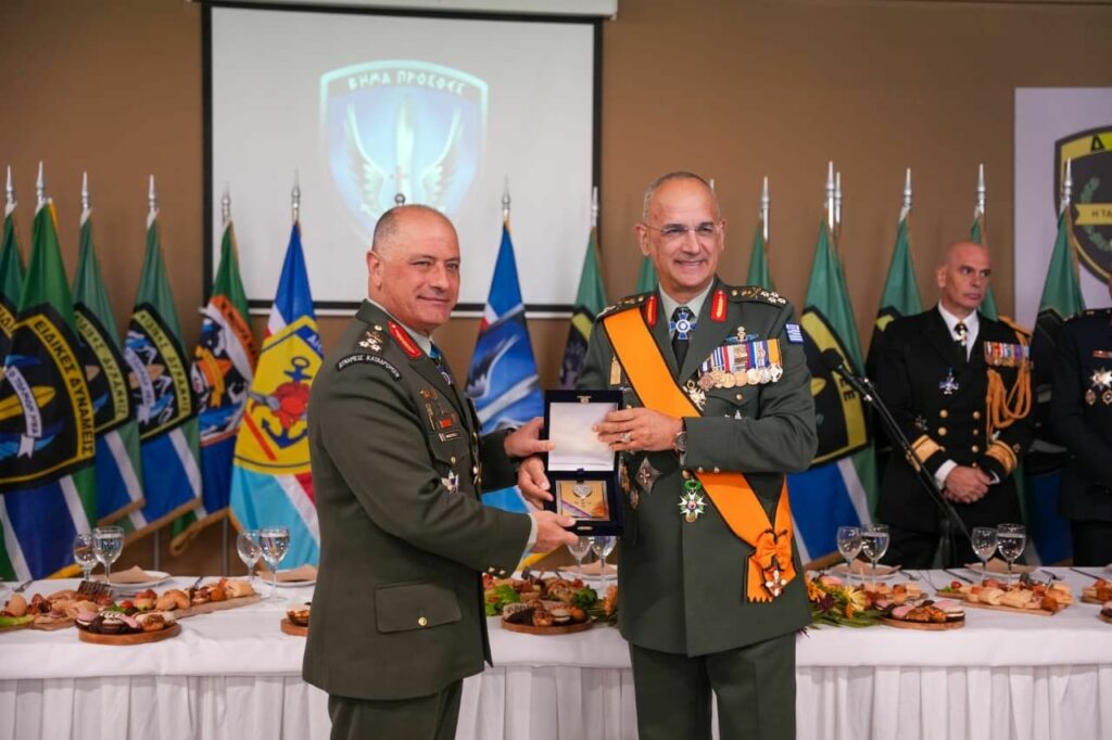 Στον απερχόμενο και καθόλα καταξιωμένο Διοικητή, Αντιστράτηγο Γεώργιο Μανουρά, ο οποίος προσέφερε πολύτιμες υπηρεσίες στις Ένοπλες Δυνάμεις και τις Ειδικές Δυνάμεις – Δυνάμεις Ειδικών Επιχειρήσεων για πάνω από 40 χρόνια, εύχομαι επίσης υγεία, προσωπική και οικογενειακή ευτυχία και εκπλήρωση κάθε προσδοκίας από εδώ και εμπρός.