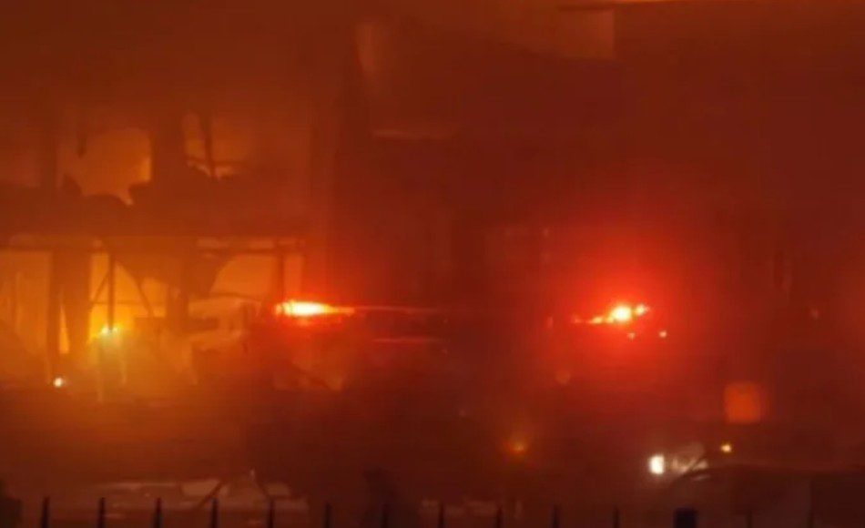 Η φωτιά εκδηλώθηκε λίγο πριν τις 4:00 π.μ. και έκαψε πτέρυγα του εργοστασίου. Λίγη ώρα νωρίτερα σημειώθηκε έκρηξη.
