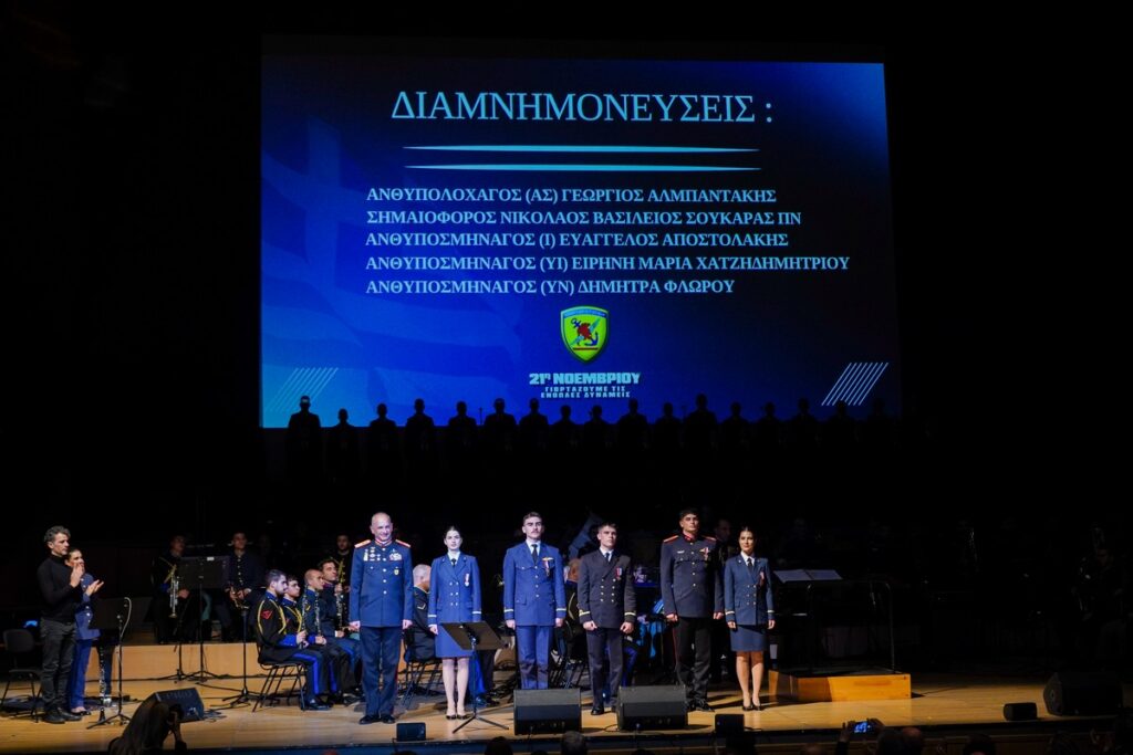 Η εκδήλωση πραγματοποιήθηκε στο Μέγαρο Μουσικής Αθηνών και πλαισιώθηκε από τη Διακλαδική ορχήστρα των ΕΔ και την ευγενική συμμετοχή καταξιωμένων καλλιτεχνών, όπως των κ.κ. Λευτέρη Γιοβανίδη, Μανώλη Μαυρομματάκη, Λευτέρη Βασιλάκη και Άρη Αντωνόπουλου (καλλλιτεχνικόδρώμενο). Τις ερμηνείες τους επίσης χάρισαν οι κ.κ. Ευανθία Ρεμπούτσικα,Πέτρος Γαϊτάνος και ο Γιώργος Νικηφόρου Ζερβάκης, ενώ την εκδήλωση παρουσίασε η δημοσιογράφος κ. ΡίτσαΜπιζόγλη.
