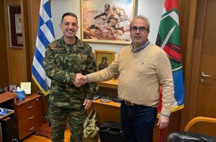 Συνάντηση συνεργασίας πραγματοποιήθηκε στην 1η Μεραρχία Πεζικού, μεταξύ του Διοικητή της Ελεγχόμενης Δομής Προσωρινής Φιλοξενίας Αιτούντων Άσυλο (Ε.Δ.Π.Φ.Α.Α.) Βέροιας, κ. Ιωάννη Ιακωβίδη, και του νέου Διοικητή της Μεραρχίας, Υποστράτηγου Χαράλαμπου Γεωργίου.