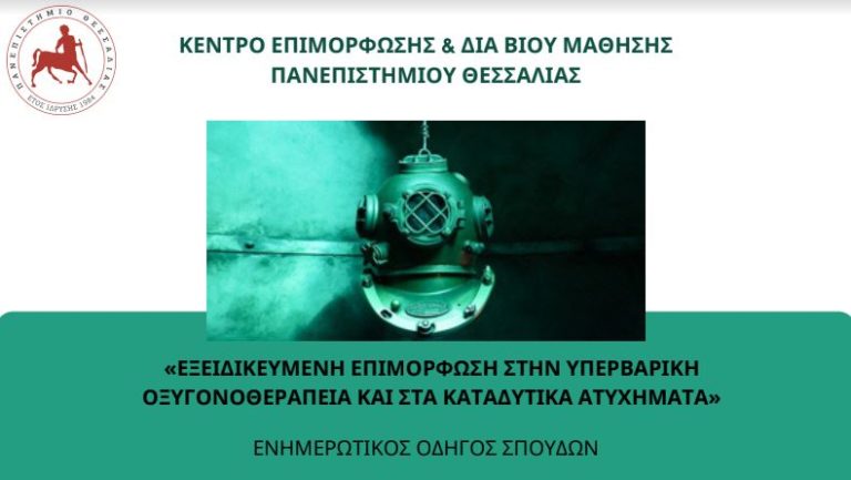 ΕΞΕΙΔΙΚΕΥΜΕΝΗ ΕΠΙΜΟΡΦΩΣΗ ΣΤΗΝ ΥΠΕΡΒΑΡΙΚΗ ΟΞΥΓΟΝΟΘΕΡΑΠΕΙΑ ΚΑΙ ΣΤΑ ΚΑΤΑΔΥΤΙΚΑ ΑΤΥΧΗΜΑΤΑ