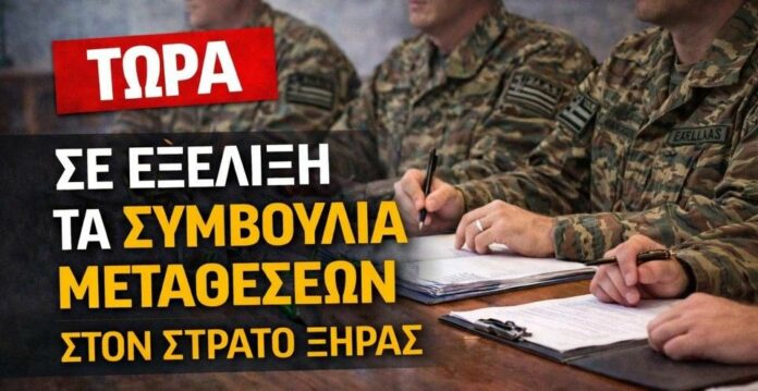 Σε πλήρη εξέλιξη βρίσκονται αυτή την ώρα τα Συμβούλια Μεταθέσεων στον Στρατό Ξηράς, τα οποία εξετάζουν τις τοποθετήσεις στελεχών για το τρέχον έτος.