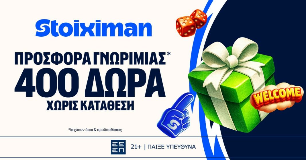 Προσφορά γνωριμίας από τη Stoiximan με 400 δώρα* + 100 έξτρα δώρα* χωρίς κατάθεση!